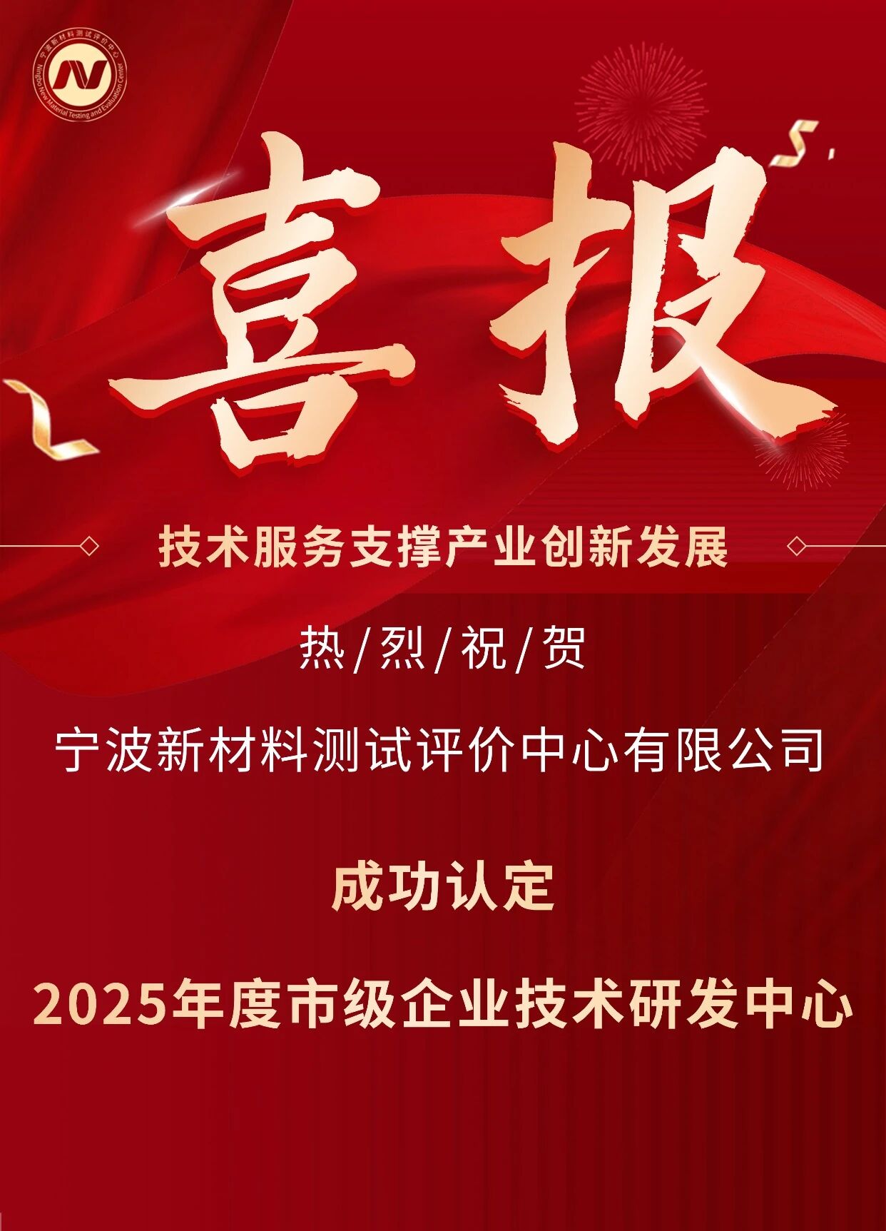 近日,2025年度宁波市重点企业研究院和企业技术研发中心拟认定名单公布,宁波市宁波新材料测试评价技术研发中心认定2025年度市级企业技术研发中心。