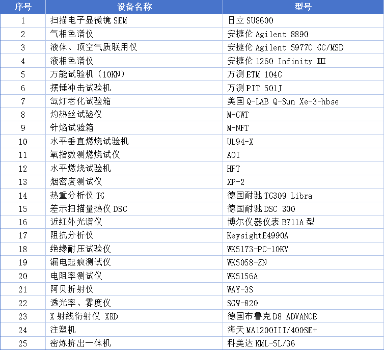 目前,所有设备均完成安装调试,已正式加入宁波新材料测试评价中心开放共享服务的行列。具体设备信息如下表所示。